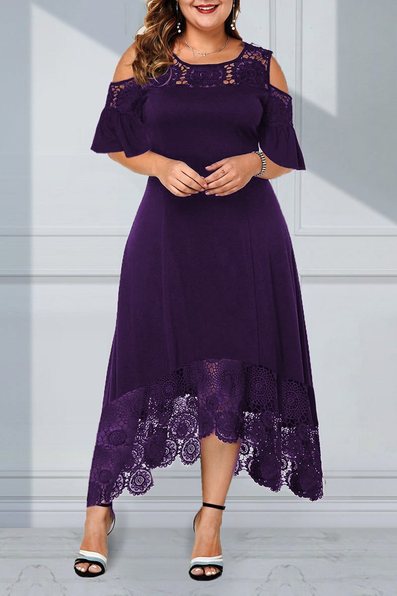 Nagy csipke hosszú ruha csipkevarrással, hosszú váll